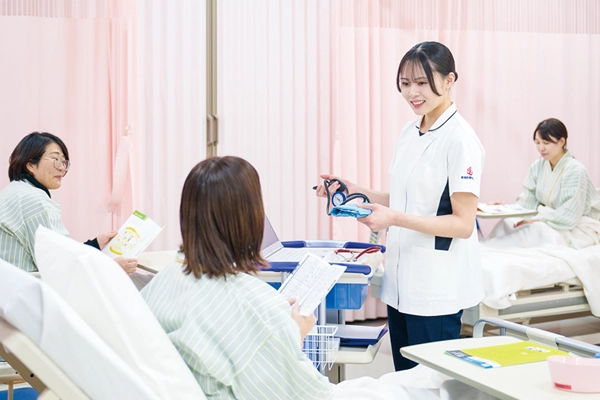 これまでの学習内容の知識と技術をすべて統合し、保健医療福祉チームの一員として現場に即した看護活動を体験します。そして、卒業後の現場にスムーズに適応できるよう看護実践能力を高めます。