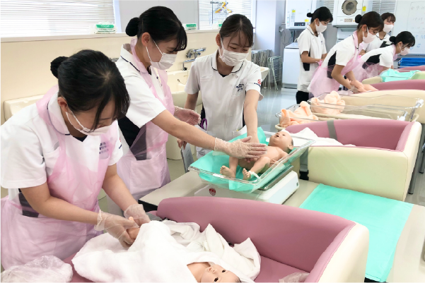 出産を迎える妊婦や出産後の母親と新生児、その家族を対象とした看護を学びます。また、生命誕生の機会に恵まれた際には一緒に立ち会い、その感動をともに味わうことができます。