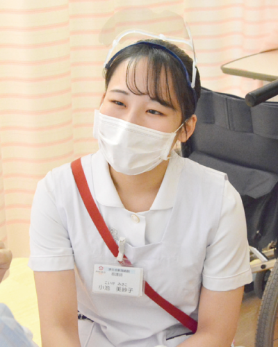 - 幼い頃の通院経験が、看護師になりたいと思ったきっかけです。診察後に対応してくれた看護師の方が「質問はないですか」と声をかけてくださるなど接しやすい雰囲気で、とても心強かったのを覚えています。