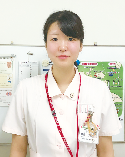 - 病棟では手術が多く、患者様の状態が急に変化することもあり、その対応で大変なことも多いです。でも、元気になって退院をしていく患者様の姿を見ると、良かったと心から思えます。患者様からは、人として多くのことを学ばせてもらっており、看護の知識以外にも自分自身が大きく成長できるやりがいのある仕事だと感じています。