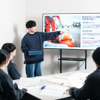 私が研究したテーマは「フライトナースが搬送中に経験する患者および同乗した家族の精神的苦痛」です。 過疎化や高齢化が急進する日本では、今後ドクターヘリの需要がますます高まることが予想されます。救急看護の分野に進みたい私は、この傾向とそこにある課題に関心を抱き、卒業研究のテーマにしました。研究の目的は、ドクターヘリで搬送されている患者さんとその家族が負う精神的苦痛を、身体的、精神的、社会的な側面から明らかにすること。膨大な先行研究を検証した結果、ドクターヘリによる搬送には救急車での搬送とは異なる苦痛が生じることが判明しました。ドクターへリならではの苦痛の本質を理解していれば、将来フライトナースとして苦痛の緩和に的確に対応できます。