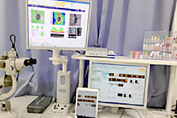 網膜剥離や緑内障などを検査する最新の眼底カメラを8台設置しています。散瞳、無散瞳、三次元画像解析など多様な機種を備えています。