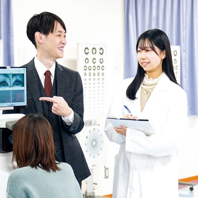 眼科では、片方の眼を隠した状態で眼の位置がどの程度ずれるのか評価することが重要です。私たちは隠した目の視線を解析できる特殊な装置を用いて、眼位の評価に取り組んでいます。この手法を使うと従来は観察できなかった隠された眼の偏位過程が可視化され、これまで検査者の技量に依存していた眼位検査も、定量的な評価が可能となります。特に小児の斜視の早期発見や弱視予防に役立つと期待しています。実際の検査に携わった経験は、視能訓練士として働く将来にも活きるはずです。