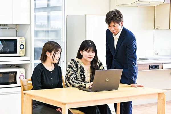 国家試験対策として、アクティブ・ラーニングを活用した4~5名の学生によるグループ学習を積極的に取り入れています。 グループ学習では、各学生の得意分野や苦手分野を共有・補完し合うことで、グループ全体での理解を深め、高い学習効果を得ています。 また、模擬試験やオンライン型の自主学習システムの結果を学生と教員で分析し、学生一人ひとりに合わせたオーダーメイド型の個別指導を行います。 こうした取り組みにより、本学科では18年連続で全国平均を上回る国家試験合格率を達成しています。
