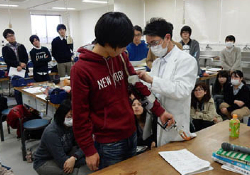 本学科では、理学療法学科や健康スポーツ学科と共同で、ヒトが運動を巧みに行うことができる仕組みを解明する研究に取り組んでいます。対象となる方に痛みを与えず安全に脳を刺激する装置や、脳の中のよく活動している部位を明らかにするための最新鋭の実験機器を使用して、国際的な英文雑誌や学会でも注目を集めるような研究成果を挙げています。学生たちも、こうした実験機器を利用することで大いに刺激を受け、日々質の高い実習や高度な卒業研究を行っています。