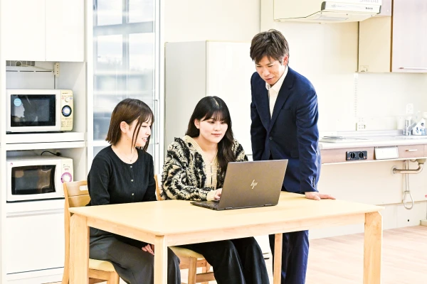 国家試験対策として、アクティブ・ラーニングを活用した4~5名の学生によるグループ学習を積極的に取り入れています。 グループ学習では、各学生の得意分野や苦手分野を共有・補完し合うことで、グループ全体での理解を深め、高い学習効果を得ています。 また、模擬試験やオンライン型の自主学習システムの結果を学生と教員で分析し、学生一人ひとりに合わせたオーダーメイド型の個別指導を行います。 こうした取り組みにより、本学科では20年連続で全国平均を上回る国家試験合格率を達成しています。