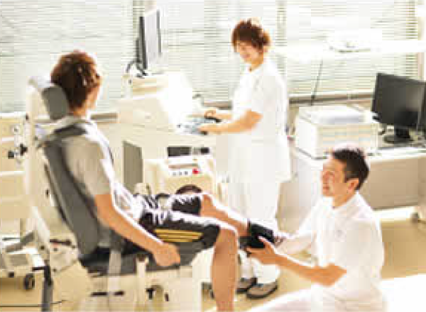 物理療法は、電気や熱などの物理的エネルギーを使って、患者様の機能回復を図る治療法です。最新の機器に触れながら、患者様の麻痺した手足の機能を回復するため、スポーツなどで生じたけがの回復を促進するために必要な知識を、楽しみながら学ぶことができます。