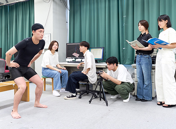 理学療法士には、ヒトの動きの異常となる原因を考え適切な治療を行い、正常な運動を引き出すことが必要とされます。そこで、運動学の授業では患者様を治療するうえで不可欠な知識を学び、ヒトの動きを分析する基礎を身につけます。また、運動学は解剖学や生理学とも密接に関係するため、それぞれを結びつけながら学ぶことで学習効果も高まります。
