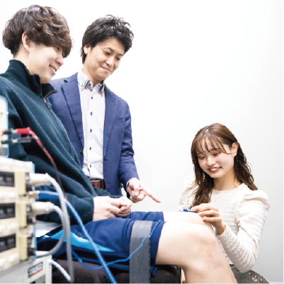 アスリートとしてパフォーマンスの向上を目指すためにも、余暇としてスポーツを楽しむことで心身ともに健康な暮らしを送るうえでも、スポーツによる障害を防ぐことは重要です。本Labでは、運動時のケガや痛みの発生要因やその解決方法、さらにはパフォーマンスを向上させる方法について、脳科学や自律神経科学の観点から研究を行っています。また、女性の月経周期に伴う心身機能の変化に関する研究も行っています。得られた知見をもとに治療に応用した徒手療法の技術を学べることも本Labの特徴であり、基礎研究による知見を臨床と統合し、広く社会に還元できる人材の育成を目指しています。
