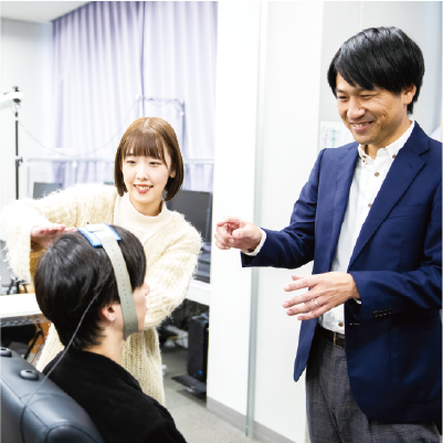 これまでの研究から、運動療法や物理療法などの理学療法を行うことで、脳機能が変化し、運動機能やバランス機能が改善することが分かっています。しかし、そのメカニズムについては未知な部分も多く、意図的に脳機能を変化させるために必要で、効果的な運動や刺激、またその種類や時間など、解明しなければならないことは山積みです。本Labでは、痛みを感じさせることなく脳を刺激する方法である“非侵襲的脳刺激法”を用いて、運動機能やバランス機能を改善させる刺激方法・治療方法の開発を目的とした研究を行っています。