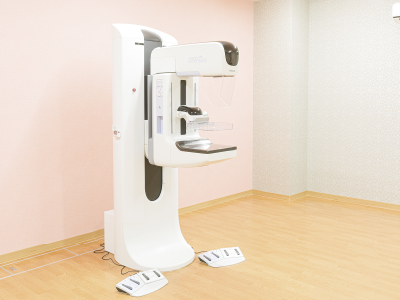 乳がん検診で使用されるマンモグラフィ検査装置を配置しています。乳がんの早期発見を目的に、マンモグラフィ検査装置特有の撮影手法や画像診断などの技術を学びます。学内施設としてマンモグラフィを導入している大学は全国的にも珍しいです。