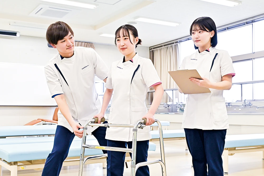 リハビリテーション専門職は、人の動きの異常となる原因を考え適切な治療を行い、正常な運動を引き出すことが必要となるため、患者さんを治療するうえで必要な知識を学び、人の動きを分析する基礎を身につけます。