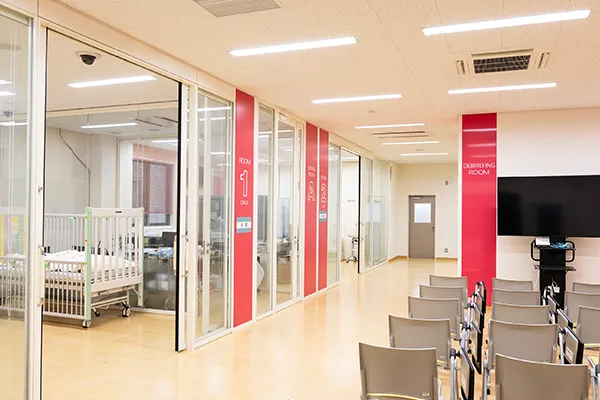 小児・成人・妊婦などの症状やバイタルサインまでも再現できる高性能シミュレーターを使い、対象者に応じた看護を納得いくまでトレーニングできます。別室モニターでリアルタイム見学や録音・録画ができるため、実践と復習の反復で看護実践力が養われます。コロナ禍で臨地実習が困難だった際も、当シミュレーターを用いて充実した演習が実現しました。