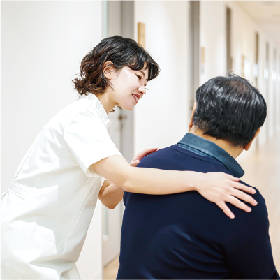 退院後の社会復帰に向けた様々な不安に対し、各専門職が連携し、安心して日常生活が送れるよう支援を行います。後遺症により、退院後も生活動作などで不便が生じる場合、訪問リハビリテーションや生活指導を行い日常生活のサポートをします。