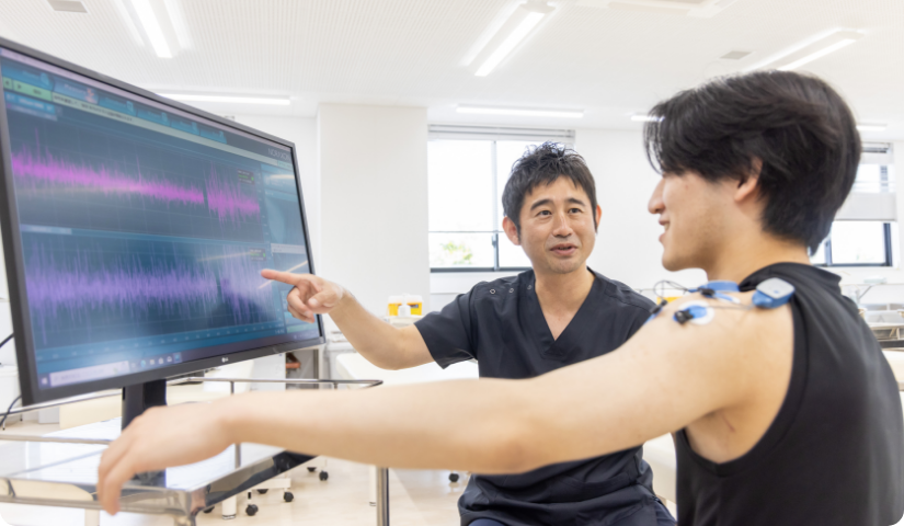 スポーツ選手がパフォーマンスを維持するには効率の良い力の発揮が求められます。筋電図では動作に関わる筋の活動が解析できるため、鍼灸施術により筋が動きやすくなったかどうか、つまり効率の良い動きが得られているかどうかを評価できます。