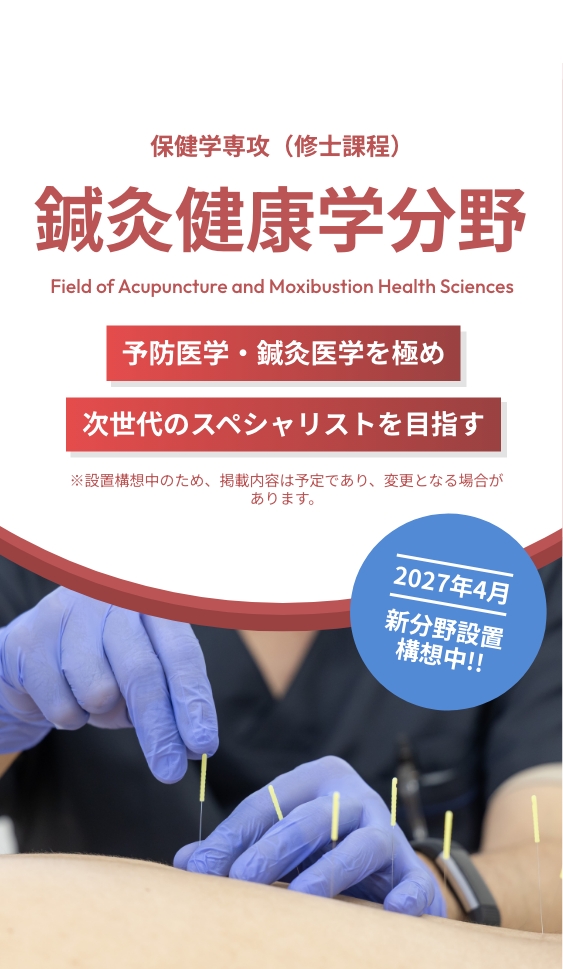 医療・健康分野における高度な知識と技術を持つ専門家を育成し、鍼灸治療を科学的に検証し、新たな知見を生み出す研究を行うことが目的です。鍼灸健康学分野では鍼灸刺激の作用機序の解明やアスリートのパフォーマンス向上・怪我予防への応用などに関して、基礎研究と臨床研究の両面からアプローチします。