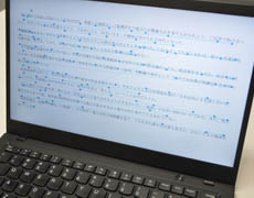 視線解析装置(アイトラッカー)を用いた読書の研究を行っています。アイトラッカーは、眼表面の光の反射を捉え、被験者の視線を記録します。読書時の視線は、流れて動いているように感じますが、実は「視線が止まっている瞬間」と「次の文字に視線が飛ぶ動き」が繰り返されています。アイトラッカーによって、黙読時の視線の動きを評価できます。現在、緑内障による視野障害と黙読の関係性について解析を進めています。