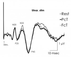図2 安静時及び各課題遂行中,尺骨神経刺激時に記録されたSEPのグランドアベレージ波形