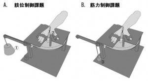 静的筋収縮時の負荷形式には,一定の外力(錘など)に抗して所定の関節角度を保持する肢位制御課題と,関節角度は固定された状態で一定の筋力を保持する筋力制御課題がある(図1).ニュートン力学的に同一関節トルクを必要とする静的筋収縮を二つの負荷形式によって疲労困憊まで行った時,その運動持続可能時間は筋力制御課題では肢位制御課題の2倍近く長いことや,運動中の筋放電量及び平均血圧が肢位制御課題で急激に増大することが知られているが,その生理学的機序は明らかにされていない.