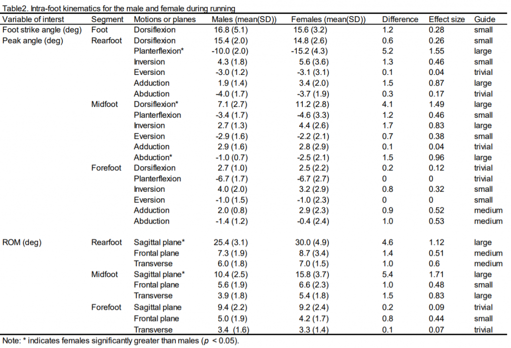 Takabayashi T, Edama M, Nakamura M, Nakamura E, Inai T, Kubo M. Gender differences associated with Rearfoot, Midfoot, and Forefoot Kinematics during running. European Journal of Sport Science. 2017.