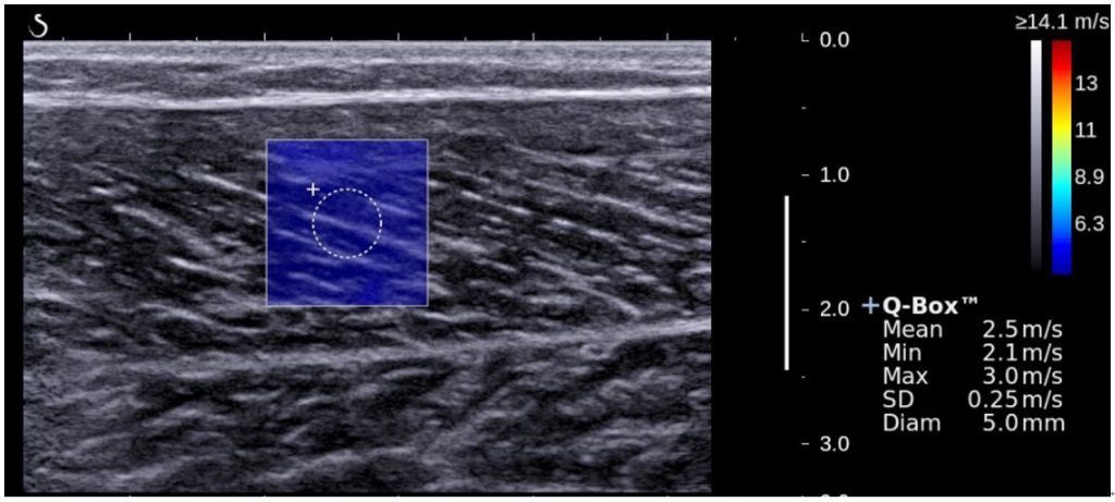 2.最先端の技術であるせん断波エラストグラフィー機能で筋の硬さを評価した点.