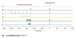 健常成人19名を対象として,様々な刺激パターンの正中神経発刺激(図1)を行い,