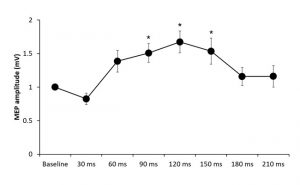 →ISI_90-150 msにて一次運動野の興奮性が増大