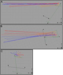 ①アキレス腱を捻れのタイプ毎に肉眼解剖学的実測値にて三次元的に再構築した点。