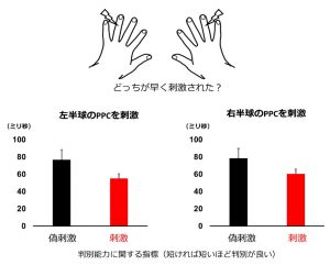 『脳への交流電気刺激によって、どちらの手が先に触られたかという判別能力が向上!』