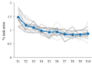 本研究では,運動学習に伴う両側半球の一次運動野の興奮性の経時的変化を明らかにしました.しかしながら,運動学習には一次運動野領域だけでなく多数の皮質領域の活動が関与します.今後は,運動学習に関与する複数領域の神経ネットワークを明らかにし,一人一人の脳活動やパフォーマンスレベルに合わせた効率的な運動学習方法の考案や,効果的なリハビリテーションプログラムの考案につなげたいと考えています.