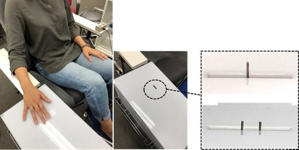 そこで本研究は,測定時のピンの刺激速度および刺激深達度をコンピュータ制御できる特注の二点式触覚刺激装置を用い,網羅的に二点識別覚を測定しました.その結果,刺激速度5.0 mm/sおよび10.0 mm/s,刺激深達度1.0 mmでの測定で最も二点識別覚が向上し,同条件での反復した測定においては二点識別覚に変動は認められず,安定した測定結果が得られることが明らかになりました.本研究の成果は,「Neuroscience Letters」に掲載されています.