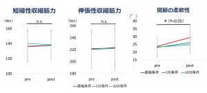 30秒以上のストレッチングの持続効果は検討されてきましたが,今回の研究では初めて30秒未満(20秒)のストレッチングが筋力や関節の柔軟性に及ぼす持続効果について検討しました.