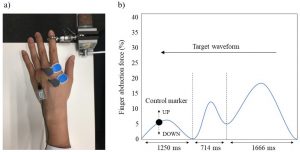 ① 運動学習課題として左示指の視覚追従課題(指の力を精密にコントロールする課題)を実施し,運動課題のエラー値を解析しました.