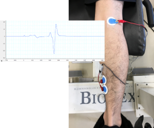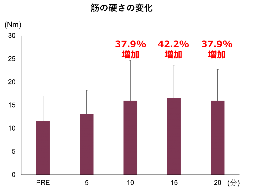 また,上記の表在寒冷刺激の効果以外には脊髄興奮性を増加があります.そこで我々は脊髄興奮性と筋の硬さの変化に着目し,筋温は経時的に減少し,関節可動域と伸張刺激に対する体制は増加する一方で,脊髄興奮性が変化しないことを明らかにしました.この結果から,表在寒冷刺激による筋の硬さの増加に脊髄興奮性が関与しない可能性を示唆することとなり,メカニズム解明への有益な情報となることが期待できます.