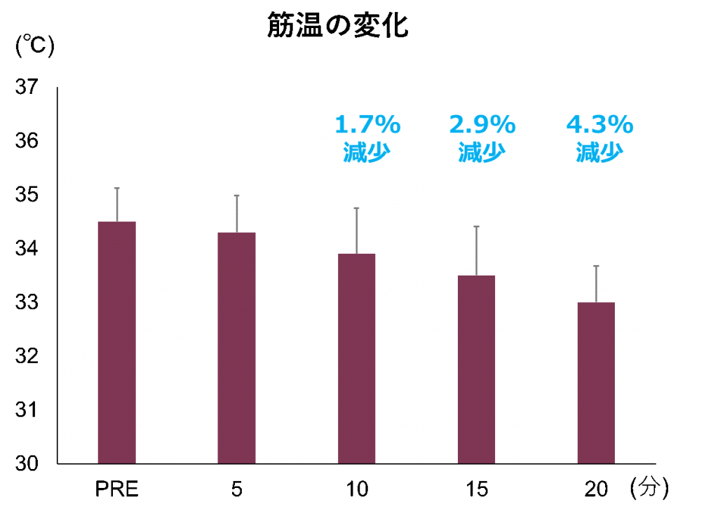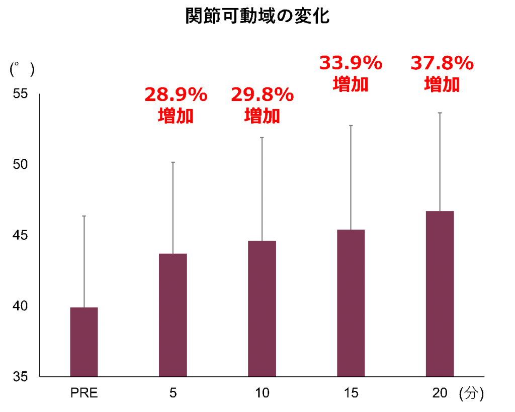 その結果,アイシング開始5分後より関節可動域は有意に増加することが明らかとなり,5分間のアイシングでも十分であると考えられます.また,そのほかの数値の変化に関しては,筋硬度はアイシング開始10分後に有意に高い値を示しましたが,脊髄興奮性の変化は認められませんでした.一方,筋温はアイシング開始10分後より有意に低い値を示しました.これらの結果より,アイシングによる筋硬度の増加には,脊髄興奮性の増加ではなく,筋肉の温度の変化(減少)が関与している可能性が示されました.本研究の成果は「Sport Sciences for Health」に掲載予定です.