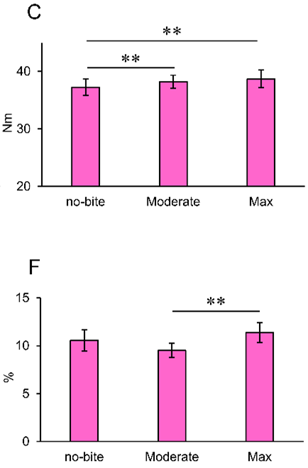 咬合強度の増加に伴い,筋力は増加し,筋活動比率も増加した(過拮抗筋の活動が大きくなった).