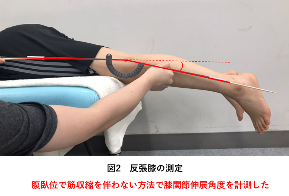 2.反張膝の測定は筋を収縮させない方法で行いました(図2).