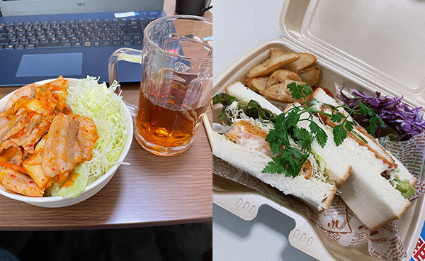 主に手軽に食べられるサンドイッチや納豆を食べています。
