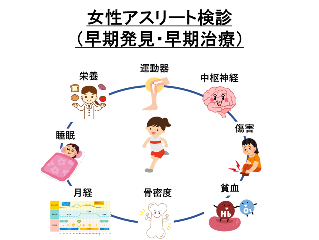 新潟医療福祉大学では、2016年度よりアスリートサポート研究センターを設立し、スポーツドクター、理学療法士、管理栄養士、アスレティックトレーナー、スポーツカウンセラーなどが協同・連携するマルチサポート体制を構築して女性アスリートを支援しています。このようなサポートシステムは全国的にも珍しく、医療福祉系の総合大学である本学だからこそできる多職種連携チームによる支援体制と言えます。そして、本学の関連病院である新潟リハビリテーション病院と協同・連携することで、二次検診の役割として女性アスリートの諸問題を早期発見・早期治療でき、さらに、医療スタッフとアスリートや指導者が密に連携を取りながら競技復帰を目指せる医科学支援体制を構築しています。