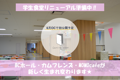 6月の来場型オープンキャンパスにて生まれ変わった学生食堂を初公開予定です?