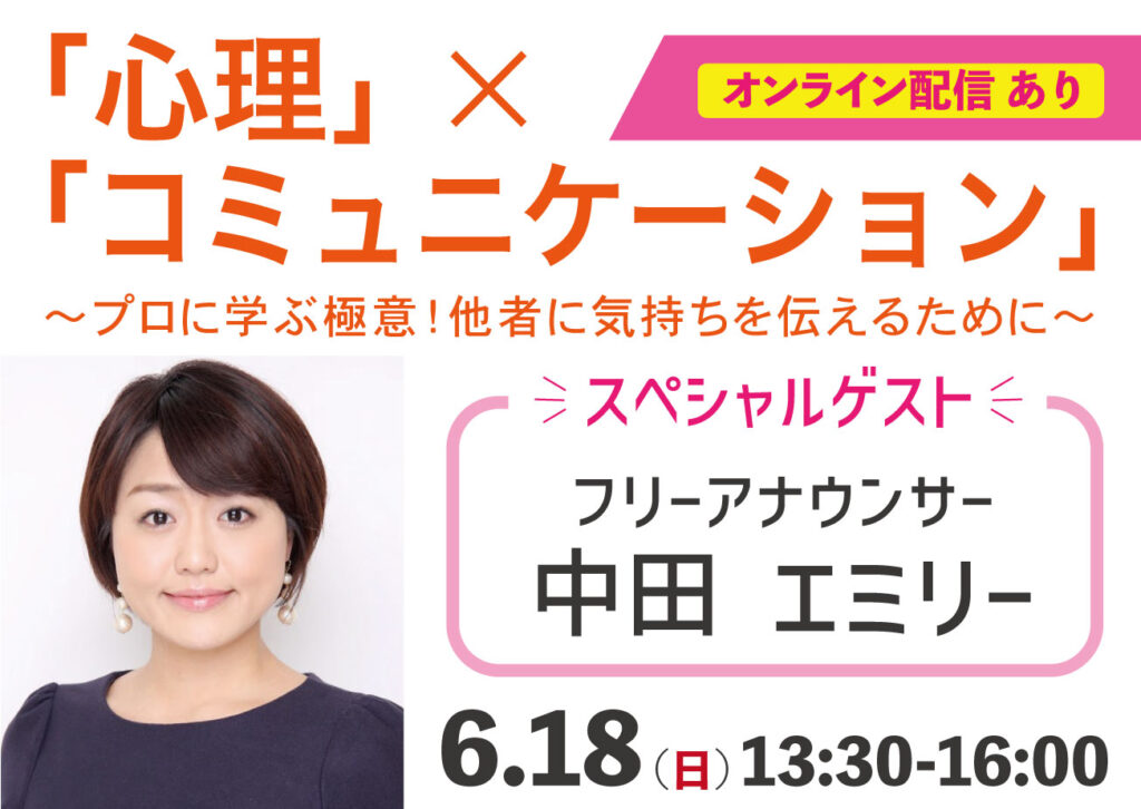 【心理健康学科新設記念イベント第二弾!】フリーアナウンサー中田エミリーさんをゲストにお招きし、6月18日(日)にイベント開催!