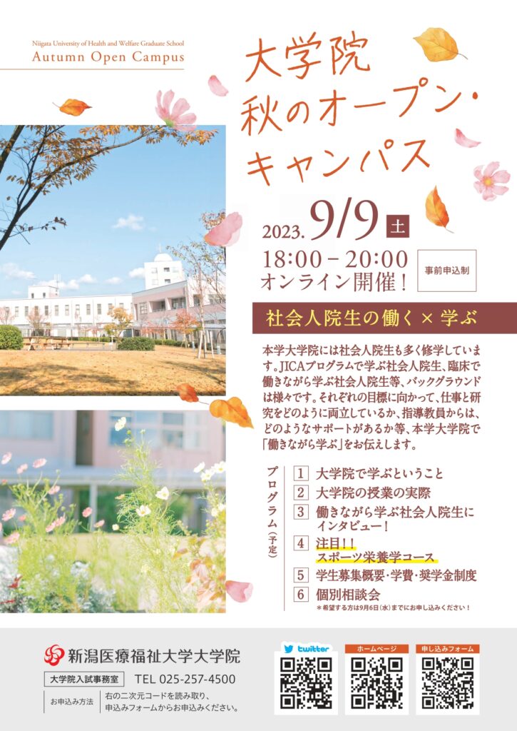 【大学院】9/9(土)大学院秋のオープン・キャンパス開催のおしらせ