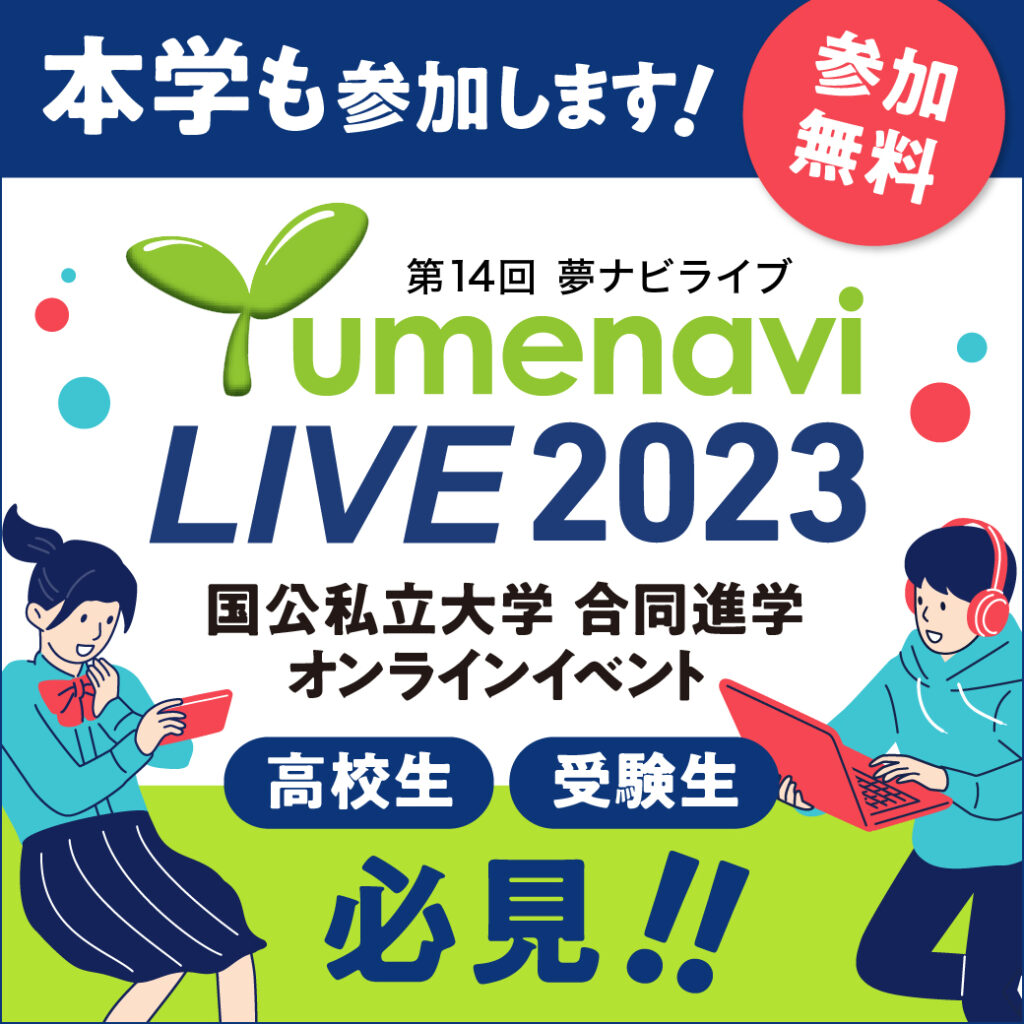 夢ナビライブとは、進学を考える高校生が「学びたい学問」を見つけ、「学べる大学」と出会うことができる大規模オンラインイベントです。毎年