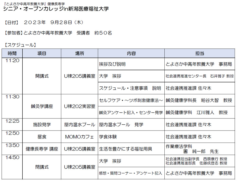 【新潟医療福祉大学×とよさか中高年教養大学】9月28日(木)シニアオープンカレッジ開催!