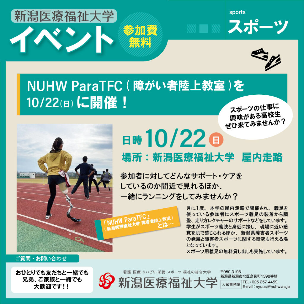 障がい者陸上教室を開催いたします!パラスポーツの現場でのサポートやケアを間近に見て、体験しませんか?