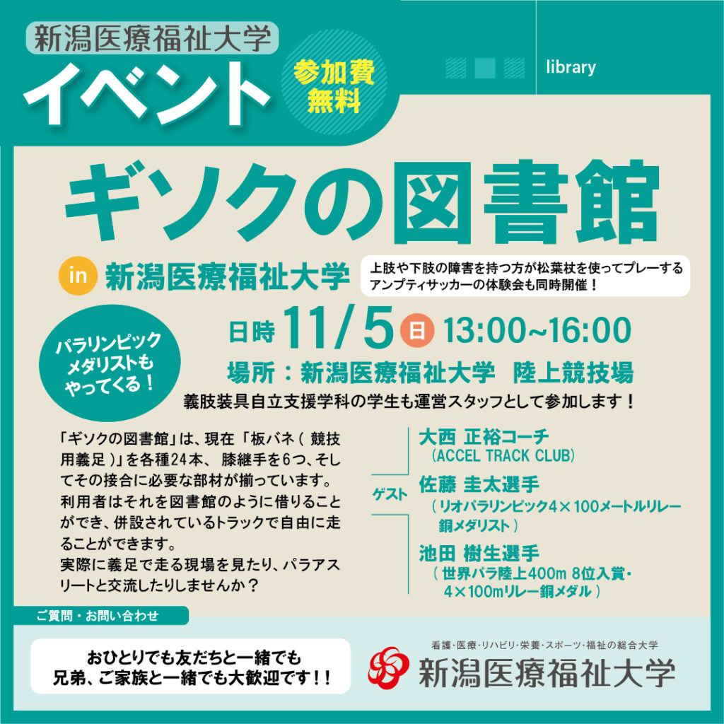 「ギソクの図書館」は、義肢ユーザーの方が競技用義足や必要な部品などを図書館のように借りることができ、併設されるトラックで自由に走ることが出来るイベントです。