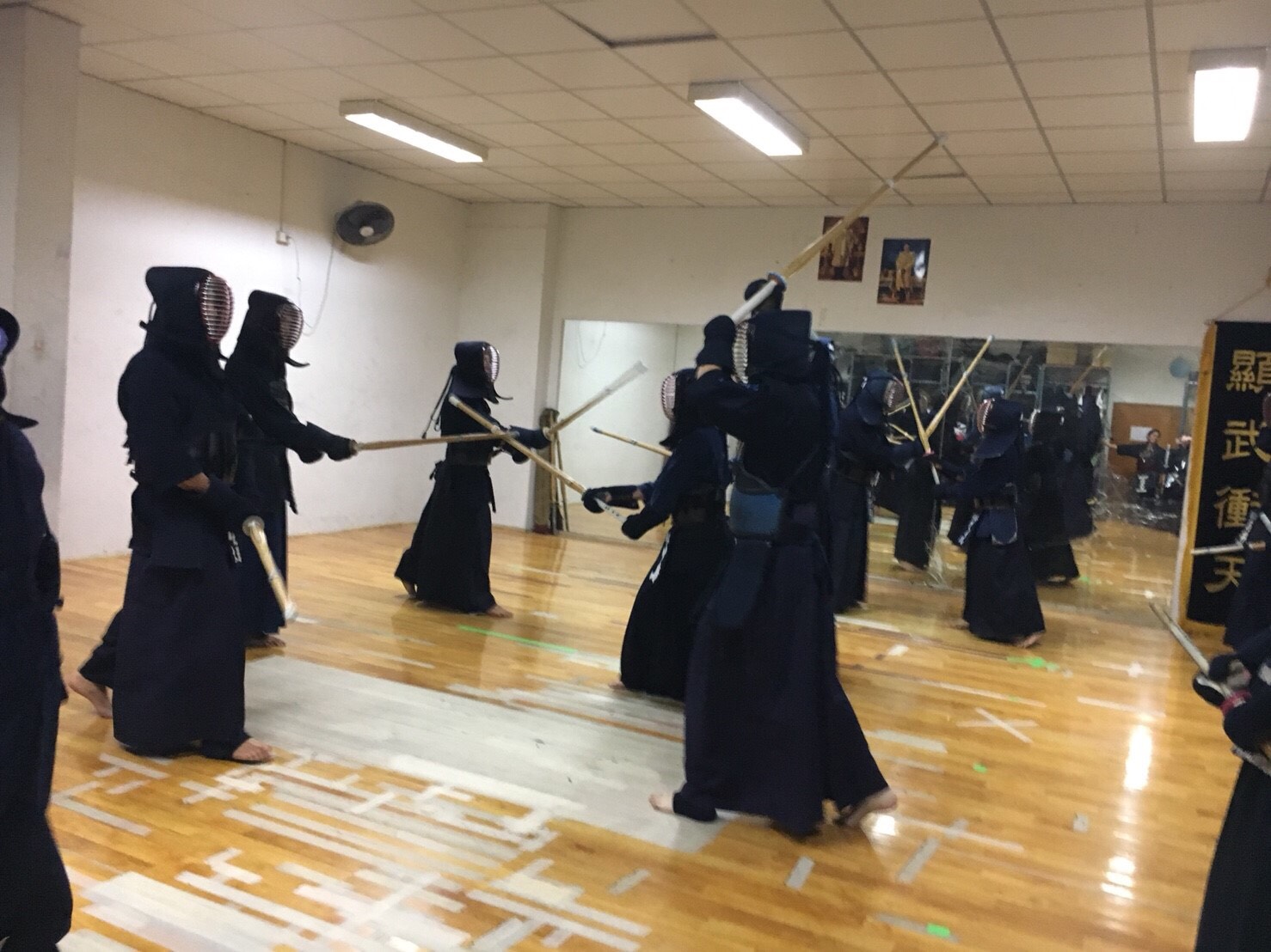 1) 稽古(地元の剣道家の方々と剣を交えて国際交流すること)