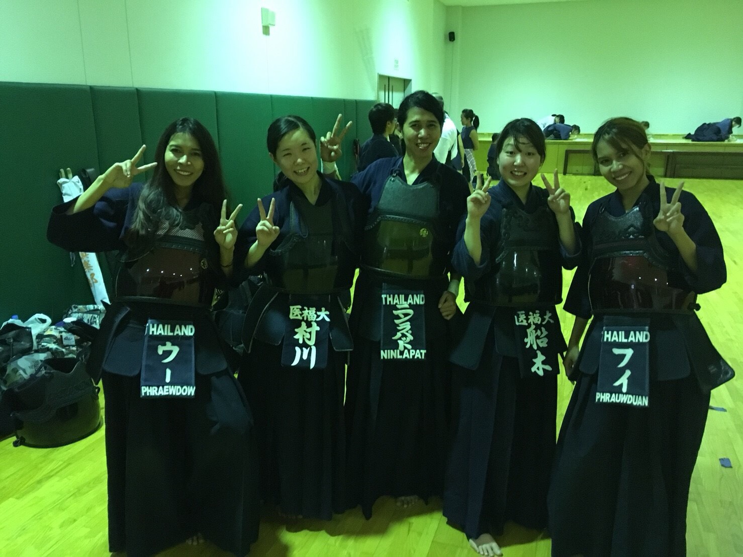 今回参加した学生2名は、初めての海外渡航でした(1名は飛行機も初体験!)。緊張感たっぷりに不安げな表情で出国しましたが、タイの先生方、選手の方たちの愛のこもった歓迎にふれて、すぐさま生き生き、キラキラとした眼に変わっていきました。剣を交えての交流は、海を超えて繋がることができます。タイで出会ったすべての方へ感謝したいと思います。