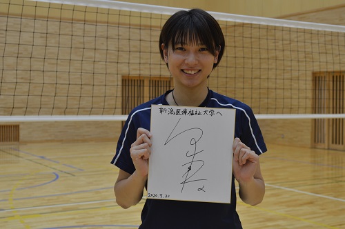 「新潟医療福祉大学のように、江玉睦明先生(理学療法学科)からのリハビリ面での支援や熊崎昌先生(健康スポーツ学科)からのトレーニングメニューの考案、中島郁子先生(健康スポーツ学科)からのスポーツカウンセリングなど、各領域の専門家がいるのはすごく幸せなこと。このサポート体制を当たり前と感じずに、日頃から与えられるトレーニングメニューに対して受け身にならず、ひとつひとつの練習の意味や、自分の身体のことに興味を持って『考えること』を忘れないでほしいです。それが必ず今後の競技人生に繋がると思います。地方大学ですが、関東の強豪大学を負かすくらいのチームになってほしいです。」と言葉を送りました。