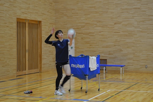 約1年ぶりに本学の練習に参加した白岩選手は後輩へも熱心に指導をしてくださり、トップリーグで活躍する先輩を間近に、本学の女子バレーボール部員も大きな刺激を受け、大変貴重な経験となりました。